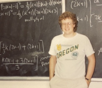 At the start of my career, I thought I might want to teach math--maybe at a small college. In fact, here's a picture of me teaching algebra to a bunch of freshmen during my first year of graduate school. Notice the huge grin.